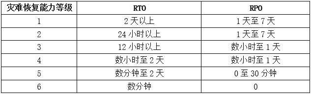 Tips:《银行业信息系统灾难恢复管理规范》(JR/T 0044—2008)中对RTO/RPO 与灾难恢复能力等级的关系描述