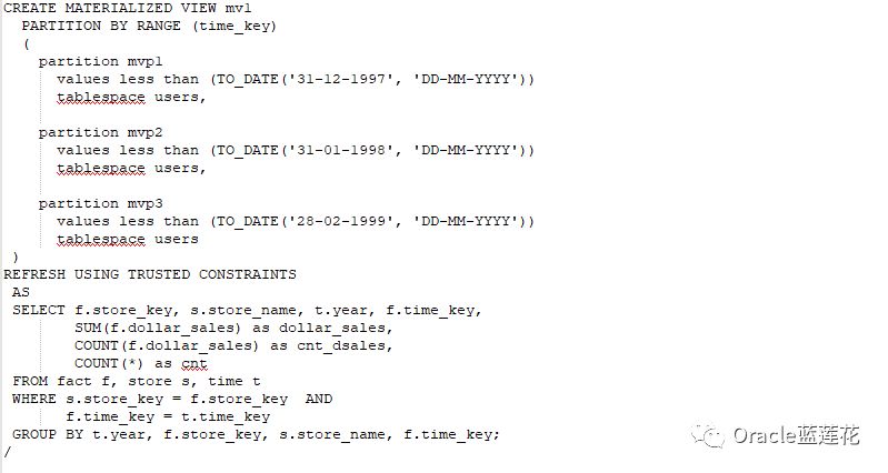 1.3.2在为其创建Staging Logs并使用REGISTER_MVIEWS过程注册MV时,会为同步刷新注册表。
