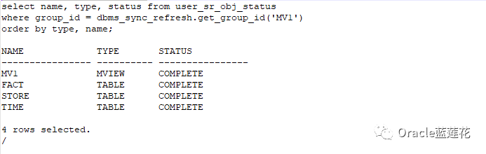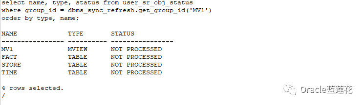 1.3.3注册mview for Synchronous Refresh会隐式创建一组称为同步刷新组的相关对象。