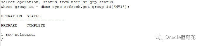 18.查询:在execute_refresh之后检查组本身的状态。注意,操作字段设置为执行,状态完成。