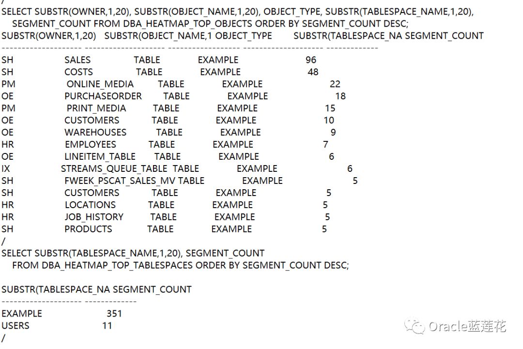 1.1.3.2DBA_HEATMAP_TOP_OBJECTS视图显示最活跃的对象的热图信息。