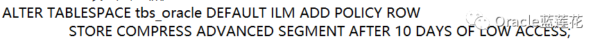注意:1.该语句表示10天后,如果tbs_oracle表空间数据处于低访问(LOW ACCESS)状态,则tbs_oracle表空间将自动按ROW STORE COMPRESS ADVANCED算法进行压缩