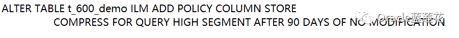 注意:该语句表示当90天后,如果600 demo表数据处于无修改(NO MODIFICATION)状态,则600 demo表数据将自动按COLUMN STORE COMPRESS FOR QUERY HIGH算法进行压缩