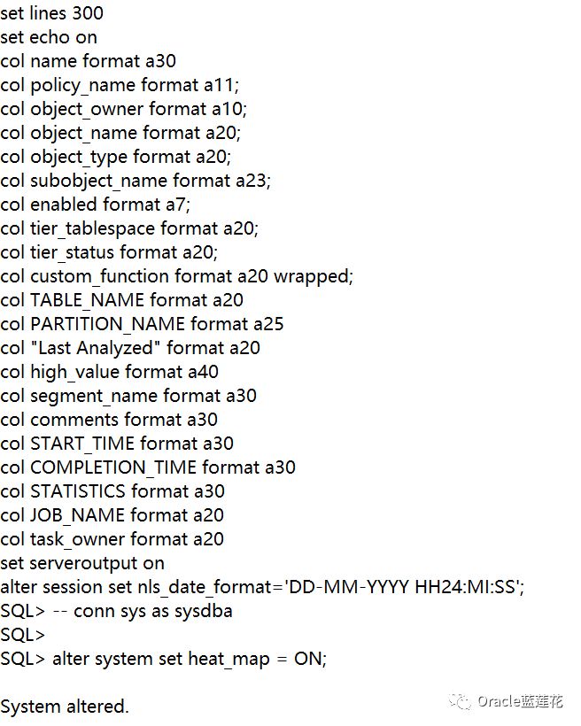 注意:1.如果启动了Heat Map功能,Oracle将自动对除SYSTEM和SYSAUX之外所有数据对象的DML和访问操作进行跟踪、分析和保存
