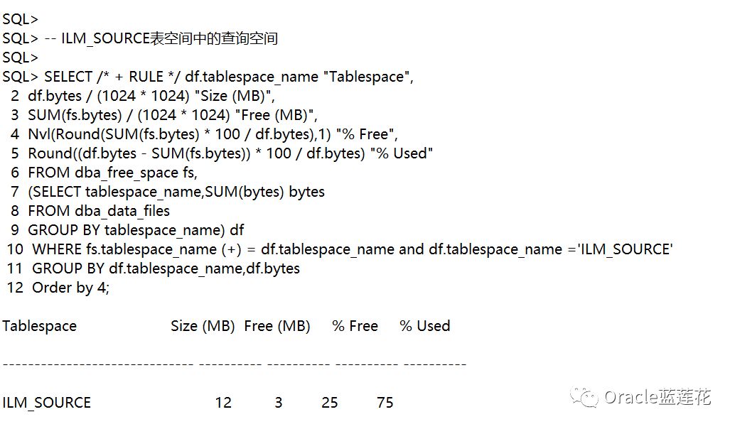 4.在将数据加载到分区JAN_1_2007之后,ILM_SOURCE表空间获得了75%的满空间和25%的空闲空间。
