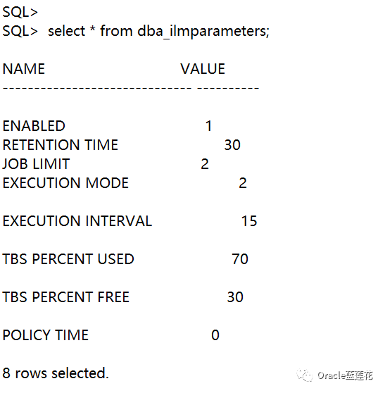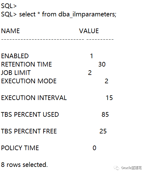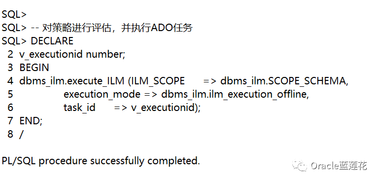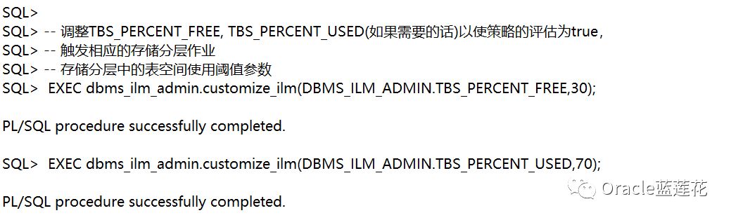 4.我们介绍完了基于ADO自动数据优化分层策略,如何利用策略去管理分区表和实现压缩机制,那么我们还需要了解LIM,也就是第二个章节我们提到的Information Lifecycle Management (ILM),这里推荐使用DBMS_LIB_ADMIN功能,DBMS_ILM_ADMIN包提供了一个接口来定制自动数据优化(ADO)策略执行。与分区和压缩相结合,ADO策略可用于帮助实现信息生命周期管理(ILM)策略