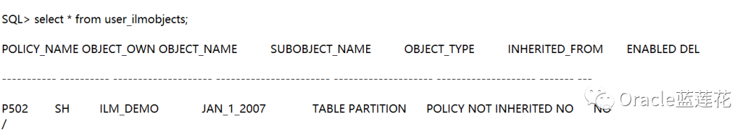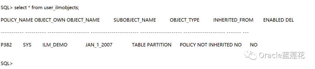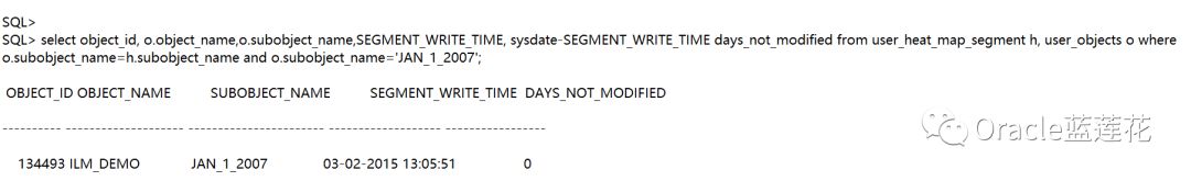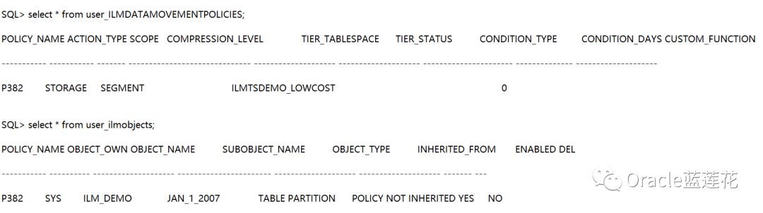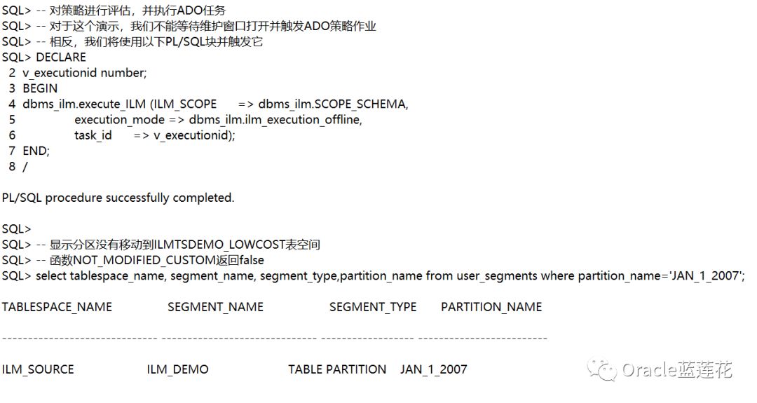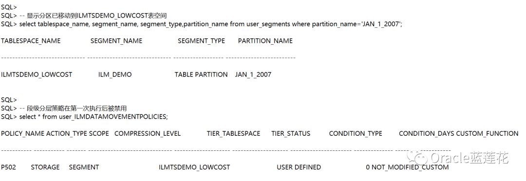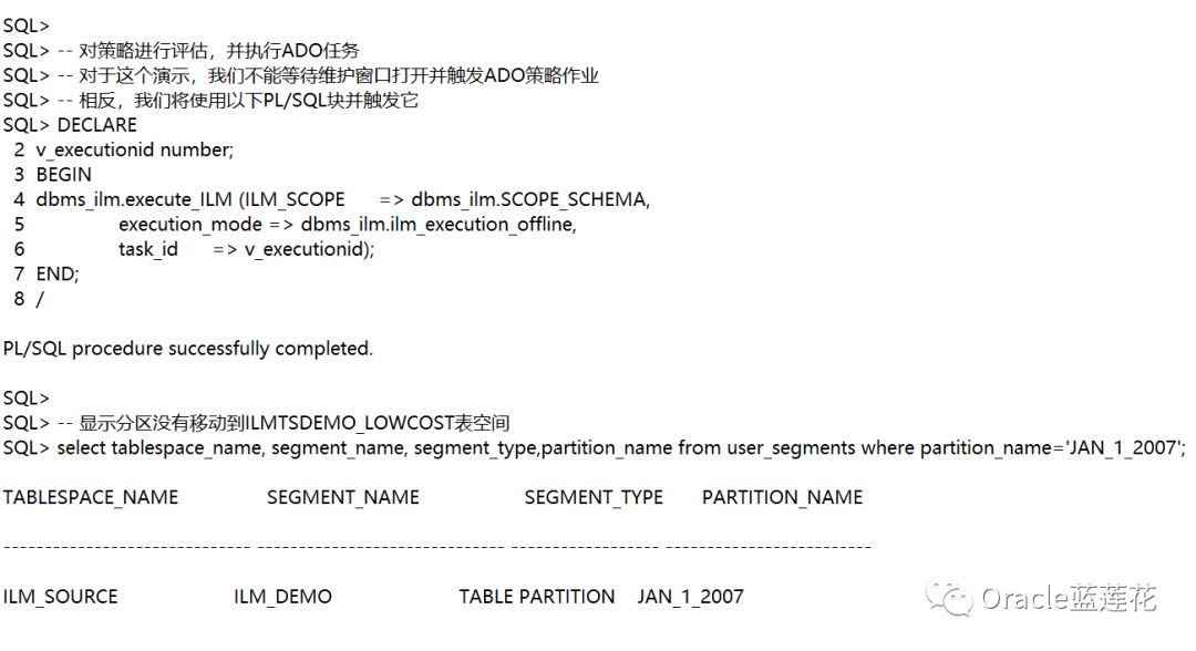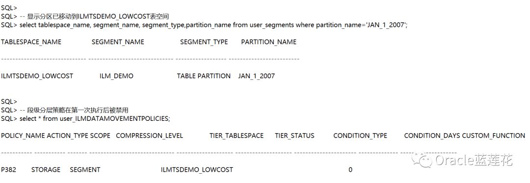 注意:1.示例在ILM_DEMO表的分区JAN_1_2007上创建并执行ADO存储分层策略。