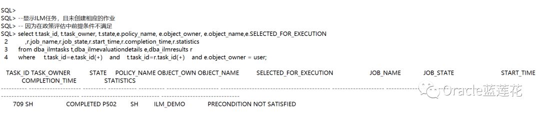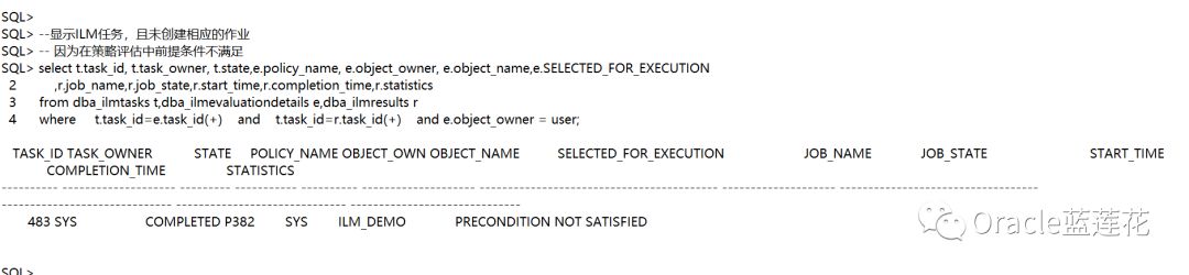 7.实例表明,这并不是最初发生的,dba_ilmevaluationdetails显示了在策略评估之后不满足的先决条件。
