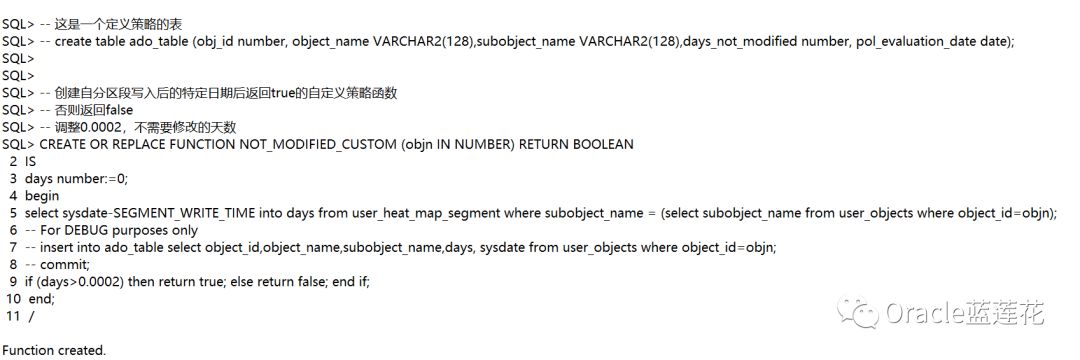 5.ILM ADO的示例存储分层策略使用自定义PL SQL功能表分区实现方法: