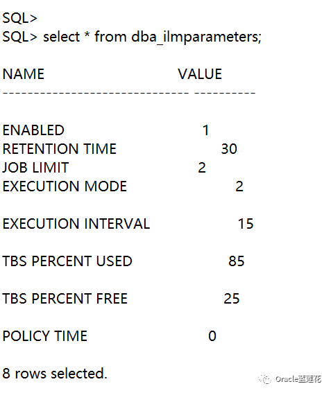 8.为了使策略计算为true,我们调整了ILM参数TBS_PERCENT_FREE和TBS_PERCENT_USED, 然后对策略进行评估为真,触发相应的ILM作业进行移动ILMTSDEMO_LOWCOST表空间的JAN_1_2007分区。