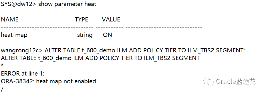 注意:LIM和ADO分别表示为:Information Lifecycle Management (ILM) Automatic Data Optimization (ADO) ,到这我们就理解了,哦哦,无非就是通过各种方法进行策略定制,只不过DBMS_HEAT_MAP是实现策略的方式而已。那么我们来聊聊具体这个测试如何定制,有什么注意事项.