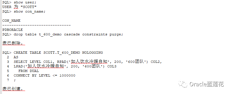 4.2创建一张与soctt.t_600_demo同结构的临时表scott.t_600_demo_bak