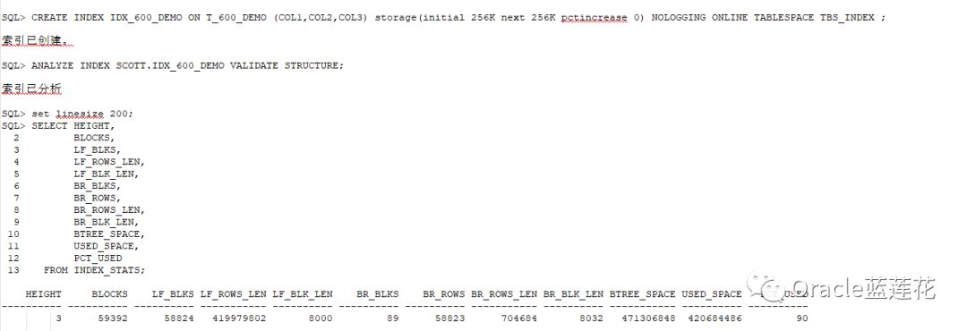 5.analyze语句会对被分析索引产生锁,在生产系统运行会产生一定影响,因此我们建议优先考虑按BLEVEL分析方法