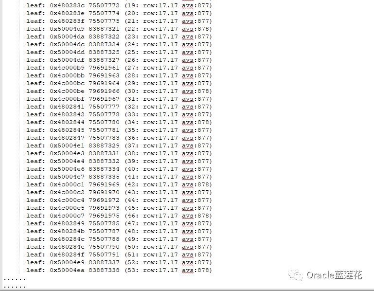 2. leaf block的nrow,rrow 变成了 row:nrow.rrow 合并成了一列, avs表示leaf blocks的可用空间