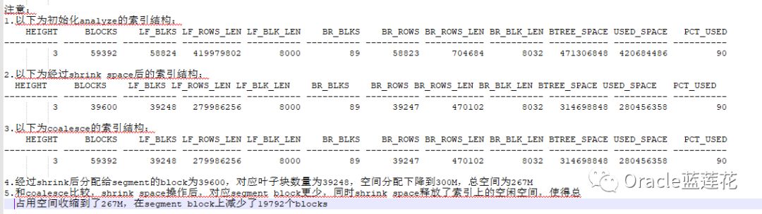 4.我们通过dump btreedump,block dump两种方式,扩展说明了coalesce的数据库块变化情况,索引结构情况,帮助大家更深入的理解