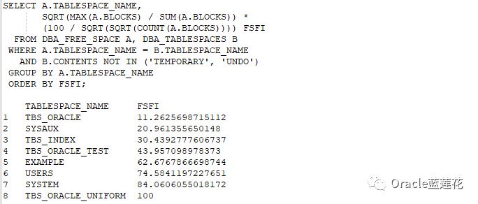 注意:如果FSFI值 < 30%,那么该表空间的碎片可能较为严重