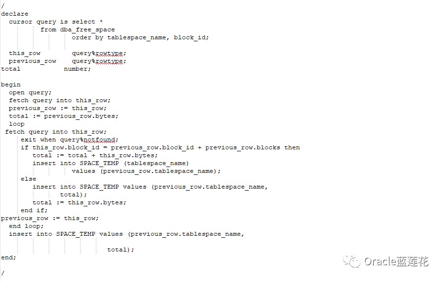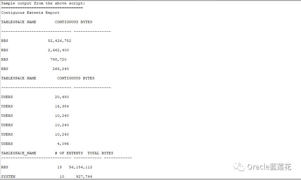 5.2按表空间显示连续的空闲空间,以下脚本oracle MOS官方提供: