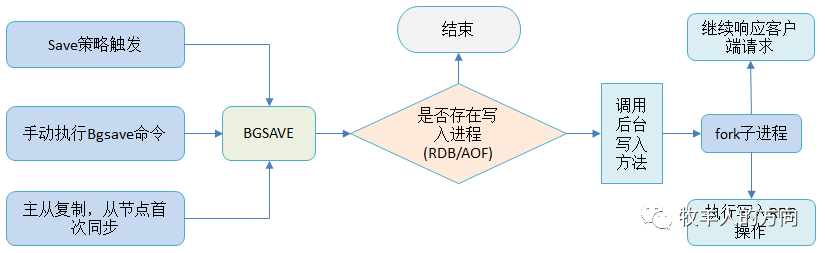 BGSave命令:执行时候会派生出folk子进程,由folk子进程完成RDB文件的创建,父进程继续完成其它的响应