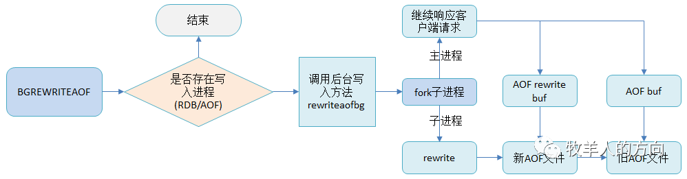 AOF有个问题是在Redis长期运行过程中,AOF日志会变得越来越大,如果宕机重启,整个重放日志的过程非常耗时。为此Redis提供bgrewriteof指令用于对AOF日志进行瘦身,原理是开辟一个子进程对内存进行遍历转换成一系列的Redis操作指令,然后序列化到新的AOF日志文件中。序列化完毕后再将操作期间发生的增量AOF日志追加到这个新的AOF日志文件中,追加完毕后替换旧的AOF日志文件。