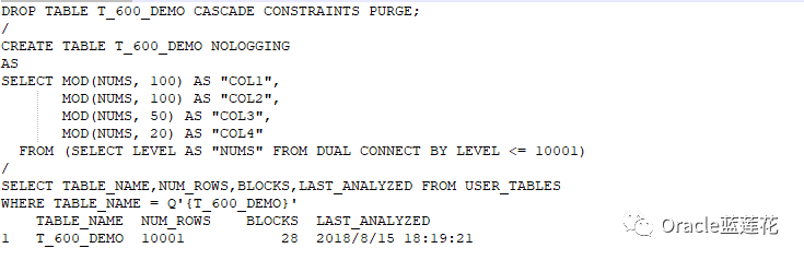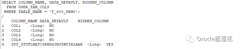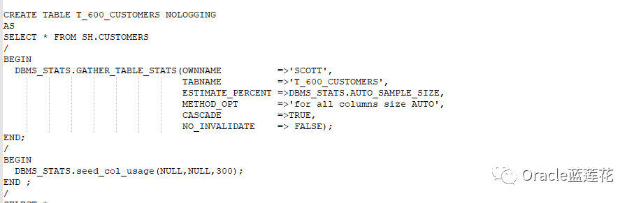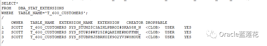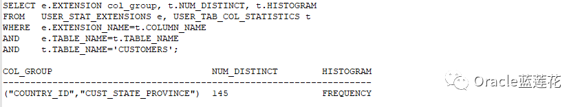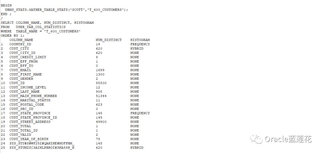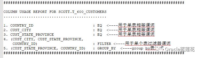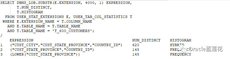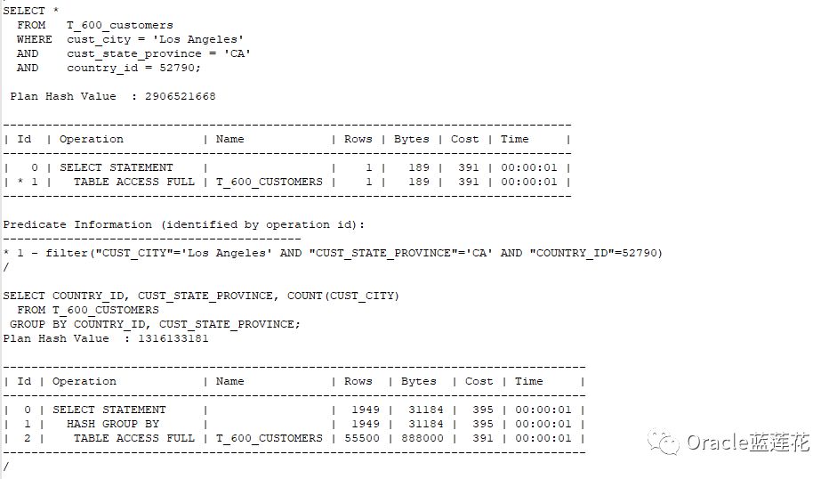 注意:1.oracle为T_600_CUSTOMERS创建了两个列组:一个列组用于筛选谓词,另一个组用于按操作分组