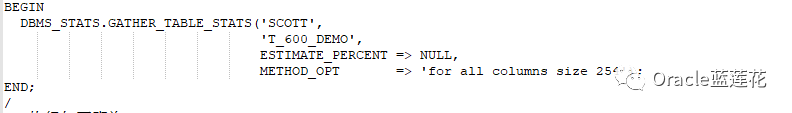 DBMS_STATS.GATHER_TABLE_STATS('SCOTT',