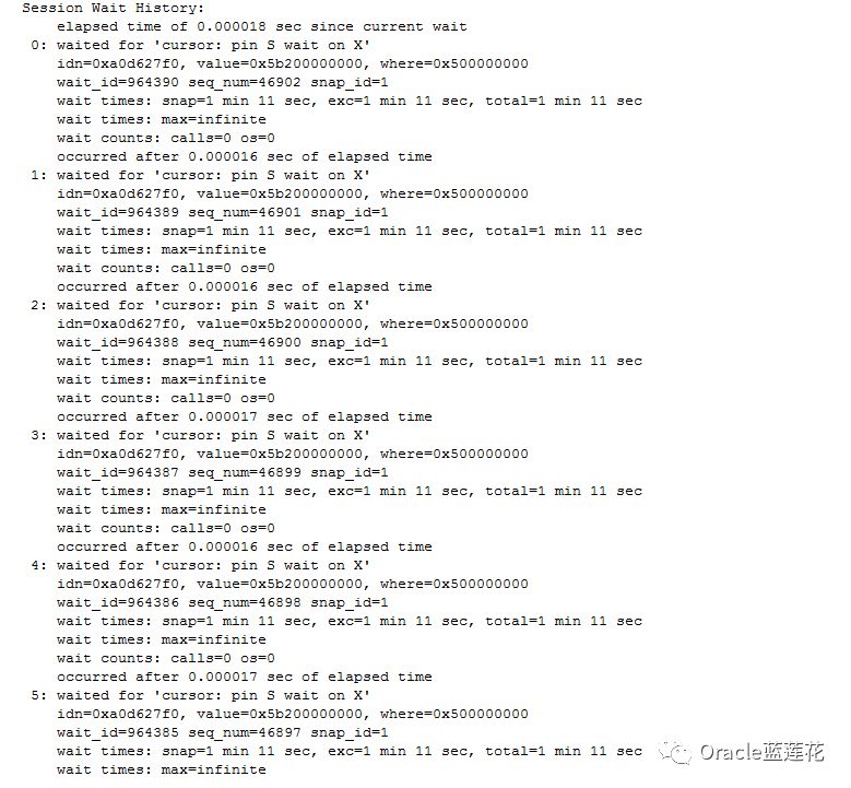4.Cursor: pin S wait on X' wait等待事件的P1参数idn,实际上就是sql语句的hash_value,也就是说通过该等待事件的P1参数即可定位等待的实际对象