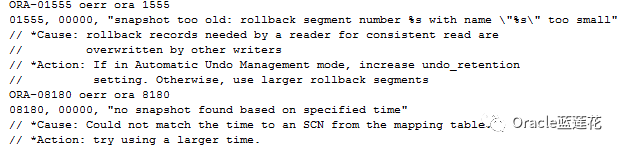 3.延迟块清除导致ORA-01555:块清除( block cleanout) ,即生成所修改数据库块上与“ 锁定” 有关的信息(请关注我们600团队明天的分享哦)