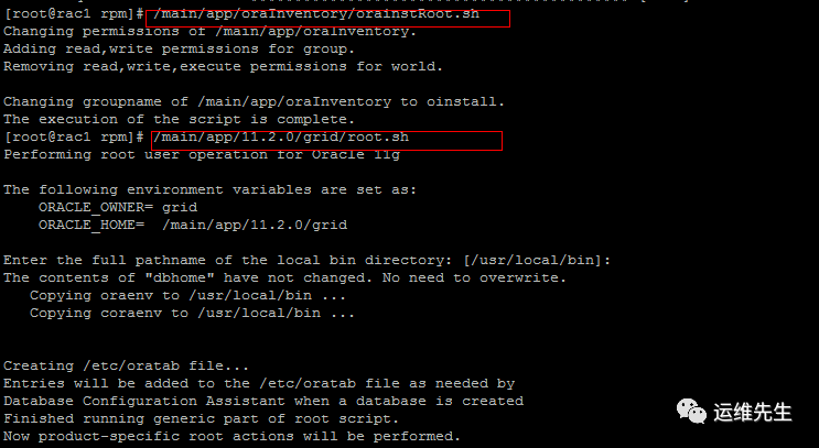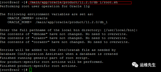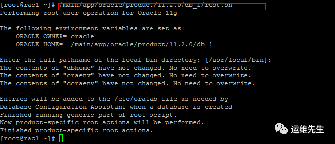 以root用户先在rac1执行,后在rac2执行,执行信息如下: