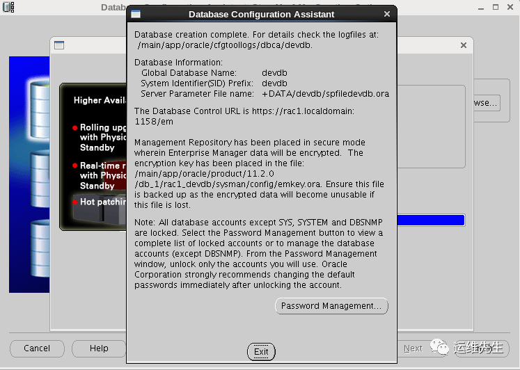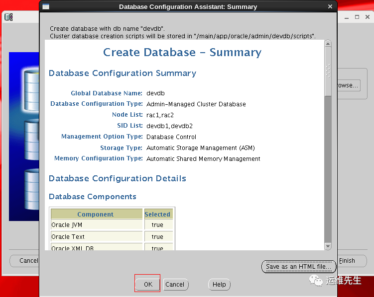 此处密码,最好复杂此处密码为7.3章节设置的密码此处的FLASH大小根据实际修改,比如存储分配了100G那么就写99999M开始数据库的建立..至此,RAC数据库安装完毕