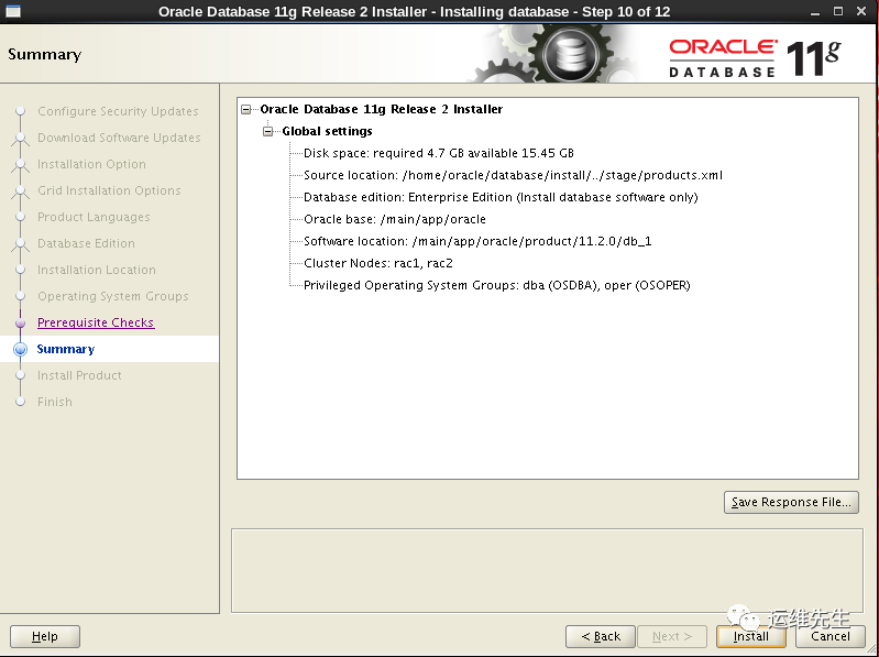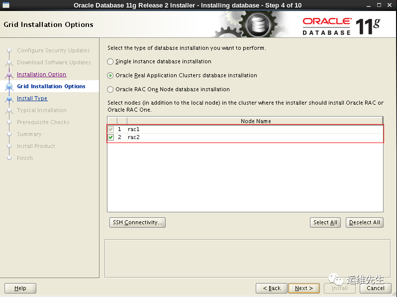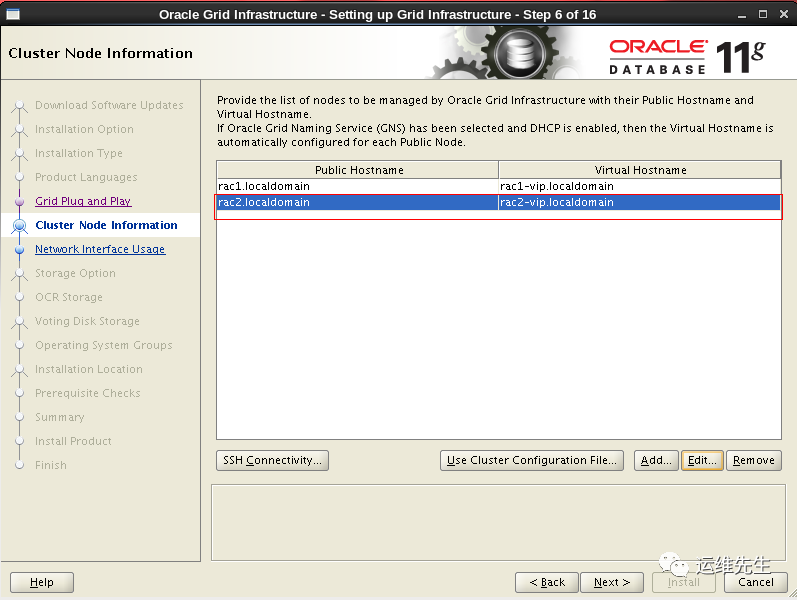 点击add,增加第二个节点:此处密码后面dbca时会用到此处用户组选择按照默认,此处的3个用户组顺序是会变得,所以按照默认,不要修改。此步需要修复,根据提示修改shmmax值此步需要先在rac1上执行脚本后再去rac2上执行执行信息:执行完毕之后点击OK按钮,继续安装