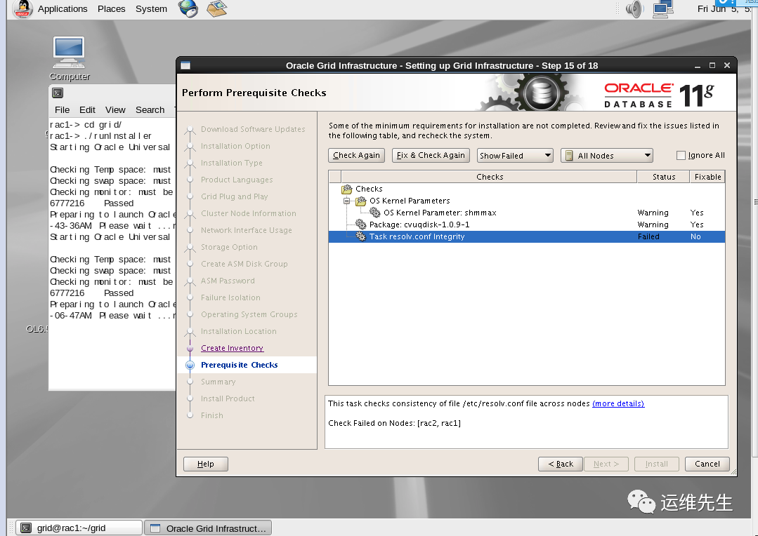#使用grid用户进入系统虚拟机桌面,打开终端,执行以下命令:
