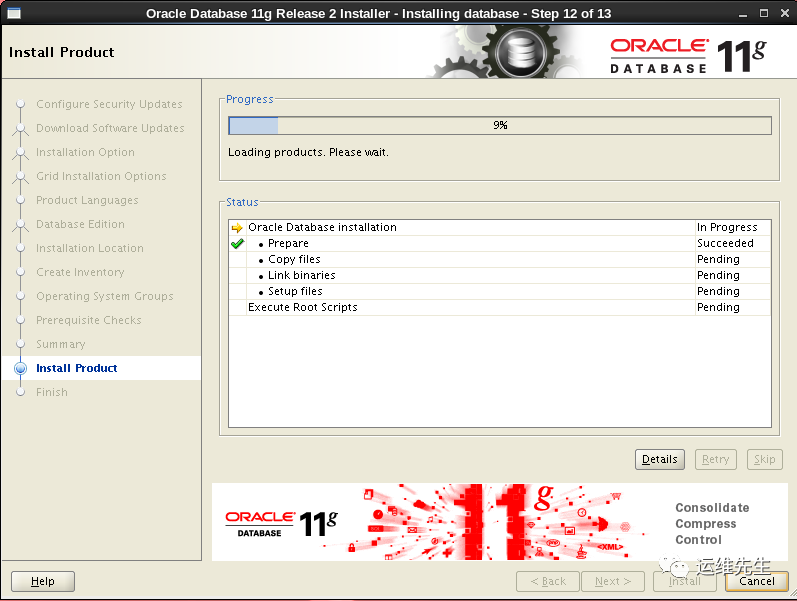 去掉勾选,点next,选择yes:根据提示在root用户下执行脚本命令