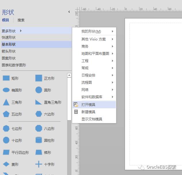 想起机械和设计行业都用Auto CAD,为什么这么多行业都用也没问题?因为人家各行业各企业有各自的模具集。 同理,Visio应该也是这样。打开Visio我们可以看到有个功能叫做模具: