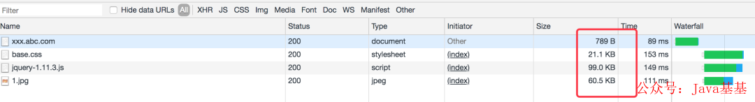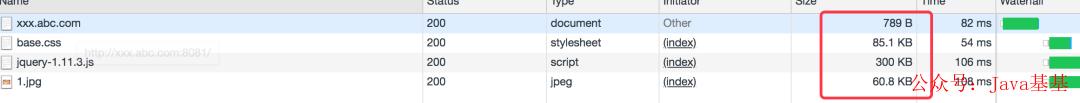 现在我们开启了gzip进行压缩后的文件的大小,可以看到如下所示:
