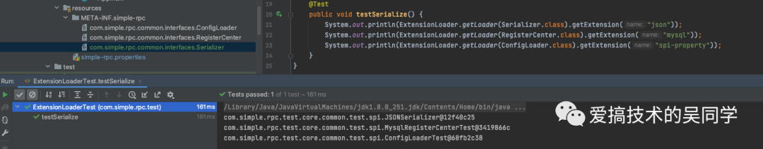 测试代码在com.simple.rpc.test.ExtensionLoaderTest中: