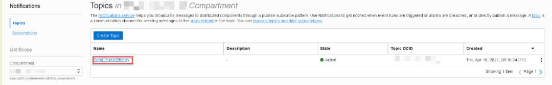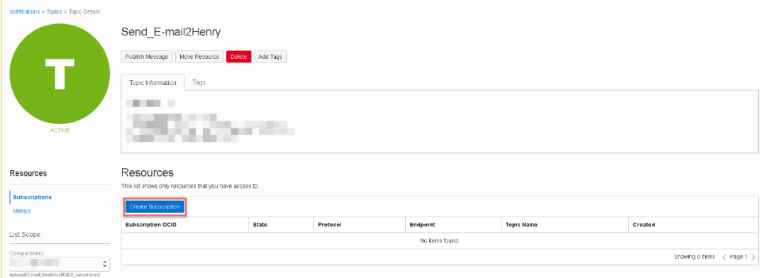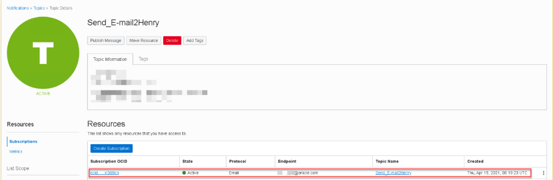 在邮箱中确认之后,OCI当中可以查看到该条订阅已经处于激活状态。