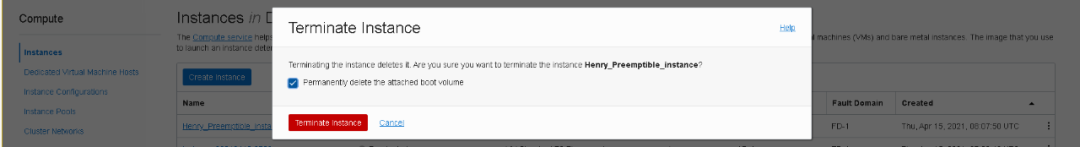 如何创建Preemptible实例?您在创建实例时,只需要选择如下选项即可,其他的配置与常规实例一致。您可以根据情况,选择boot volume是否在实例回收时一并删除。如果您日后还想使用该实例当中的内容,建议保留boot volume。