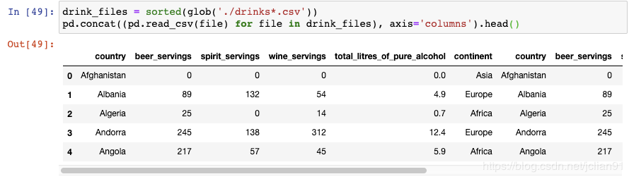 同上一个技巧一样,我们以使用glob()函数开始。这一次,我们需要告诉concat()函数按列来组合: