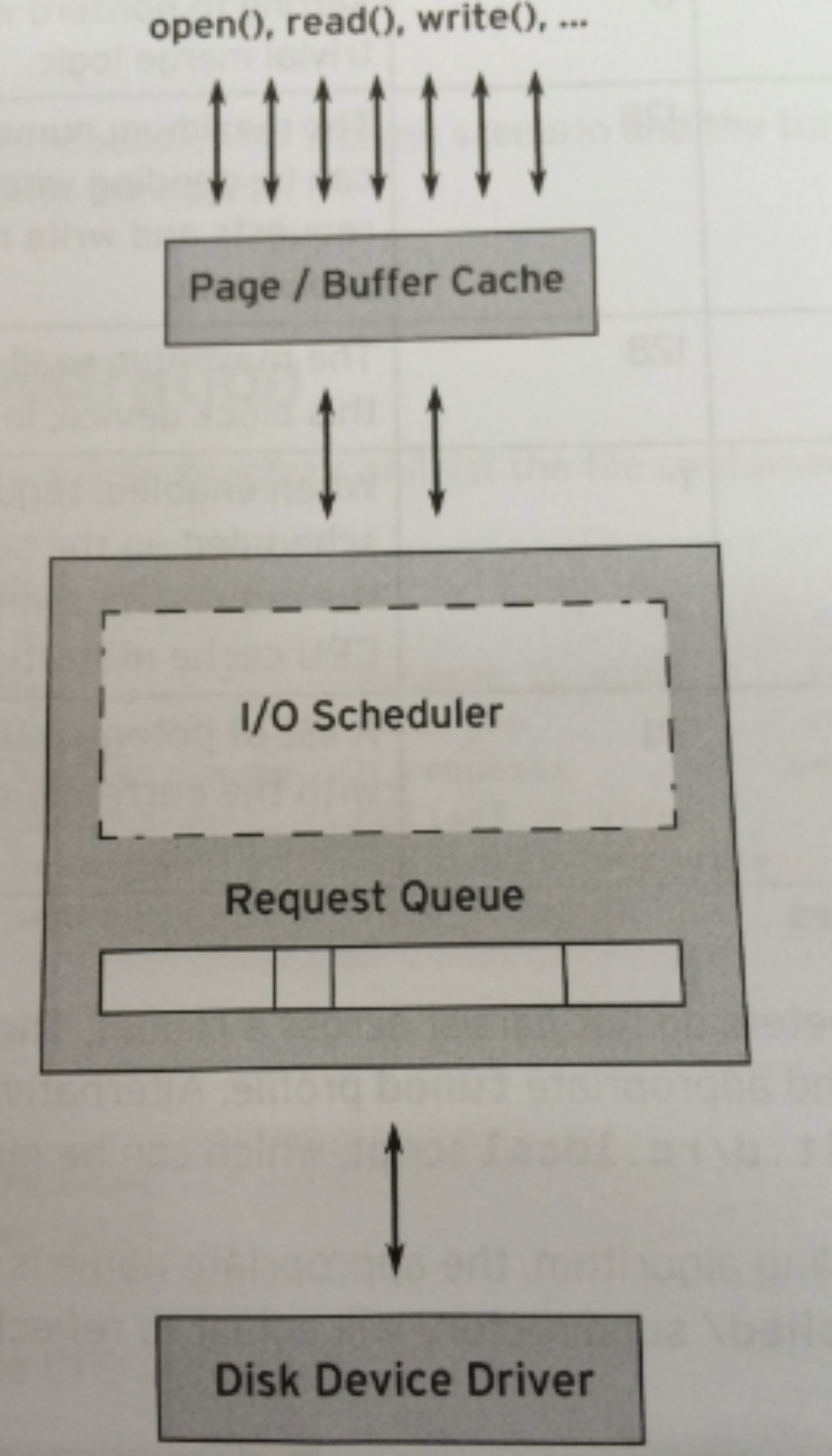 通常磁盘的读写影响是由磁头到柱面移动造成了延迟,解决这种延迟内核主要采用两种策略:缓存和IO调度算法来进行弥补.
