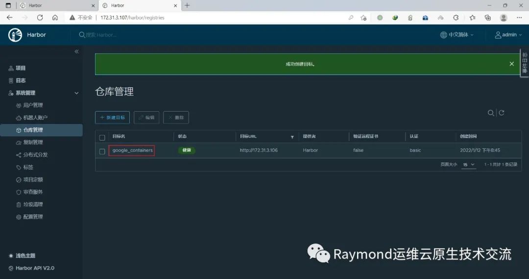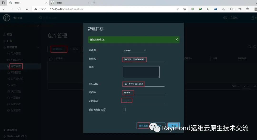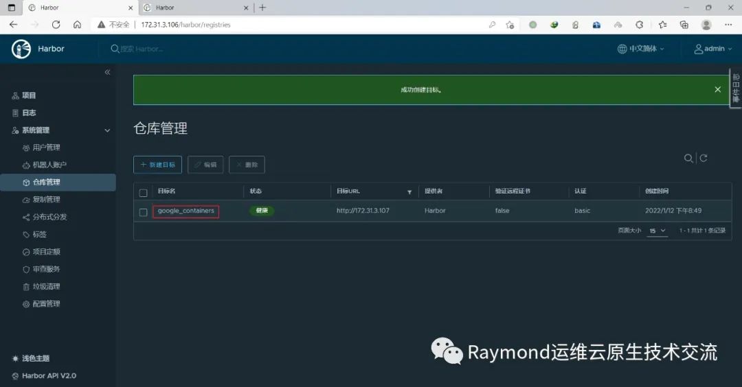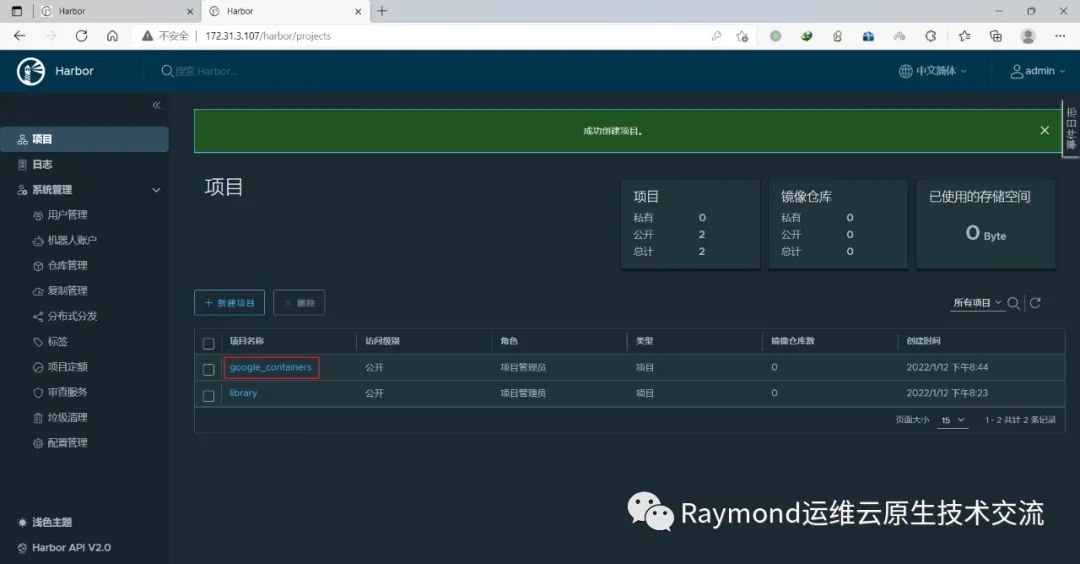 | harbor2 | k8s-harbor02.example.local | 2C2G | 172.31.3.107 | chrony-client、docker、docker-compose、harbor |