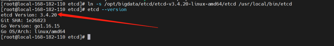 ln -s /opt/bigdata/etcd/etcd-v3.4.20-linux-amd64/etcd /usr/local/bin/etcd