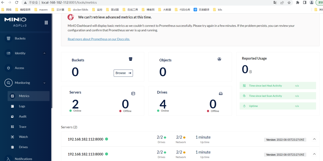 ./minio server --address 0.0.0.0:8000 --console-address 0.0.0.0:8001 --config-dir /etc/minio http://192.168.182.11{0...1}/opt/bigdata/minio/data/export{3...4}