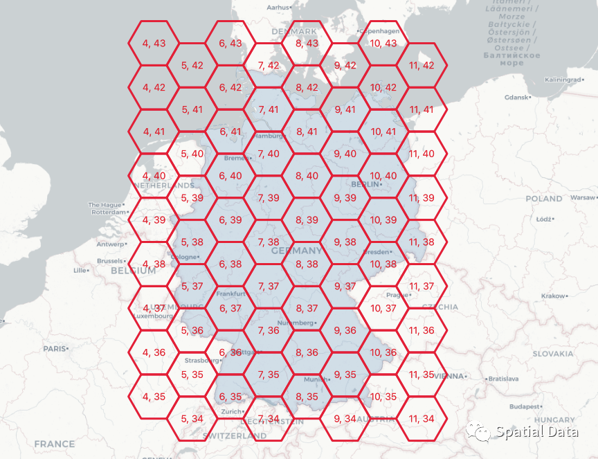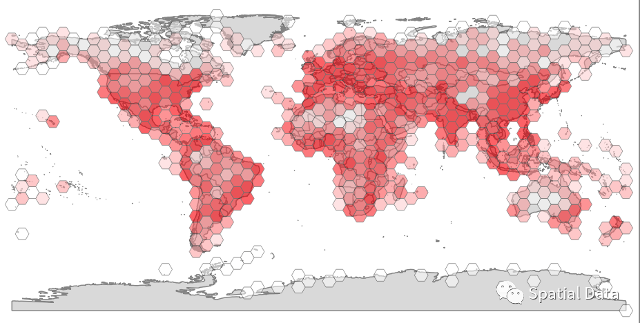 蜂窝网格目前非常流行,在某些制图表达和统计建模上具有一些特定场景的优势,一开始应该出现在Uber提出的H3格式: