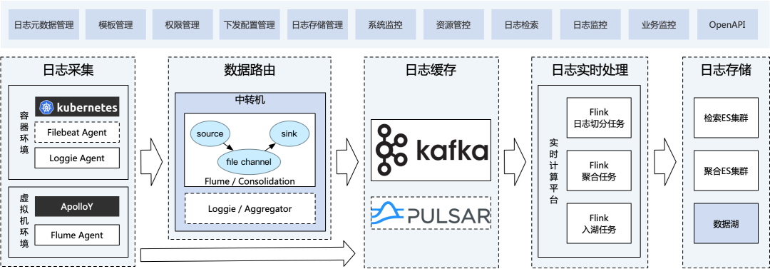 不仅可以实现日志数据分流、流量削峰填谷、简单的数据校验、协议转换、安全控制等功能。 也可以实现全局日志流量与资源的可视化,并在此基础上实现限流、资源隔离、流量调度及扩缩容。