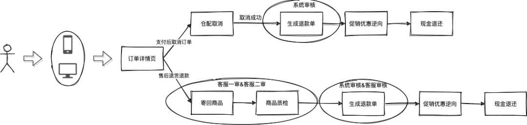 为什么又把补偿退款流程单独拎出来呢?那是从业务形态上出发的,赔付和其他逆向交易流程存在着天然的差异性,赔付流程仅涉及单类现金或促销优惠的退还,不需要关联商品或者订单下单过程中使用的现金或促销优惠;