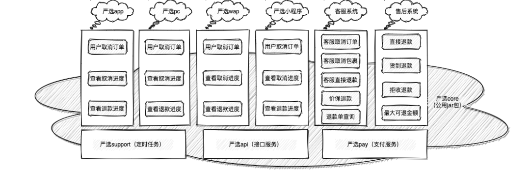 严选在前期发展过程当中,主要受商业环境的影响,业务玩法层出不穷,业务飞速迭代过程中C端交易逆向流程一直是最容易被忽视以及容易出现线上问题的场景,并且在逆向流程日常运维过程中,一直由交易域领域专家跟进处理,消耗着交易域宝贵的研发资源,给用户带来不好体验的同时还消耗着严选客服资源,且存在资损风险。