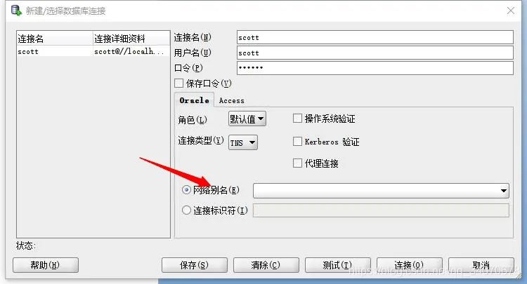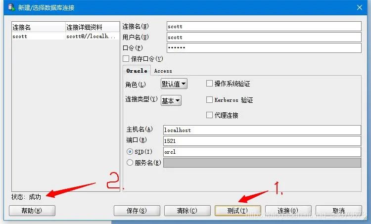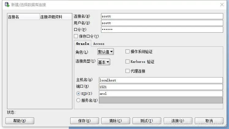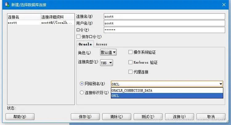 先填写连接名,用户名,以及口令;Oracle提供了system、scott等多种用户名,这里填写Scott(因为Scott中有几张用于测试的数据表),scott的初始口令为tiger,如果你已经修改,那就按修改的来。
