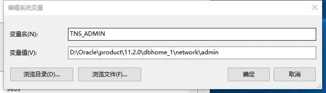 在没有设置环境变量之前,网络别名按钮是无效的。必须先设置环境变量。设置TNS_ADMIN环境变量指向tnsnames.ora文件所在目录。方法如下所示: