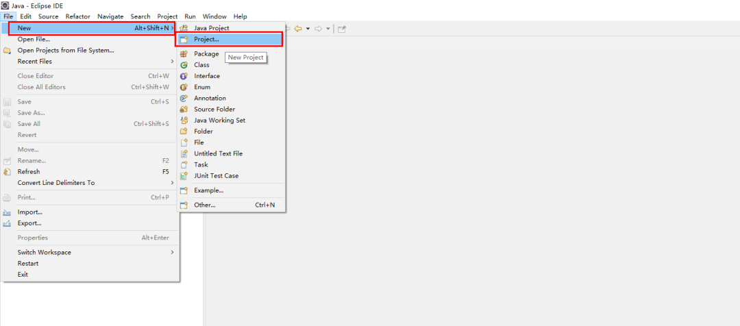 打开 Eclipse,选中菜单 File ——> New ——> Project