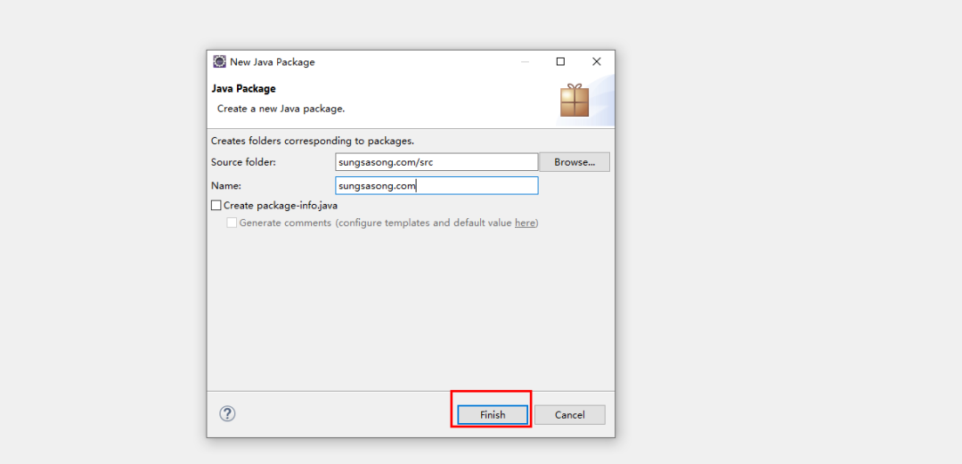 src——>New——>Package,然后使用默认名称,点击Finsh。